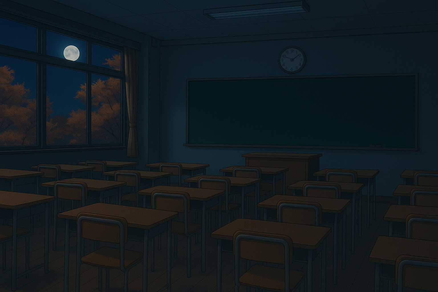 秋の教室をイメージした背景です。TRPGや配信背景等にご利用ください。